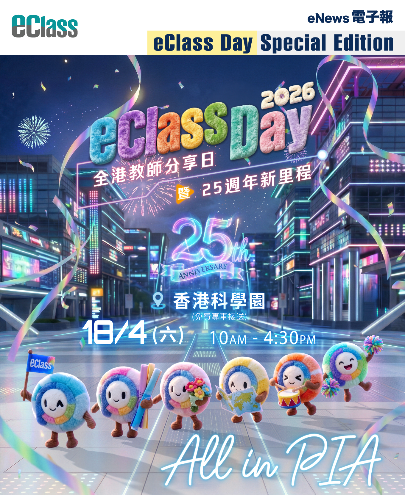 由於專題講座座位有限,誠邀各同工儘早報名參與。隨後我們更將在電子報中陸續發佈更多 eClass Day 2026 的精彩內容,敬請密切留意! |