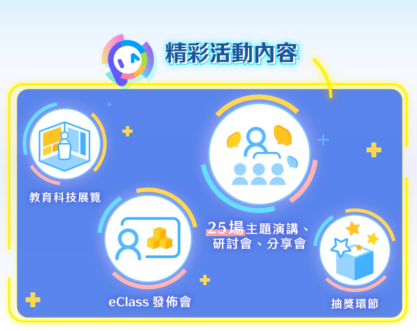 今年的 eClass Day 將聚焦於 AI 的全方位應用 (AI for ALL),並深入探討電子行政、電子教學、STEM、圖書館管理及教師認證等多個範疇的實踐成果。透過一系列精心安排的主題演講、研討會、分享會及工作坊,我們期望為同工帶來全面且具啟發性的體驗,協助同工掌握 AI 使用,切實提升教學質素與行政效率,實現 AI 與校園生活的全方位融合。 |